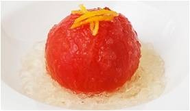■白ワインベースのジュレと爽やかな柚子の香りで、トマトそのもののおいしさが引き立ちます。