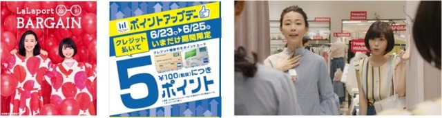 また、2017年4月から始まった新たなシリーズCM「母娘シリーズ」の第二弾「ららぽーと夏バーゲン篇」が、6月19日(月)よりYoutube( https://youtu.be/E2ep5KH1t3s )とTVにて放映開始となります。母役の木村佳乃さんと娘役の浜辺美波さんによる、ららぽーとバーゲンを舞台にしたユーモラスなやり取りをぜひお楽しみください。