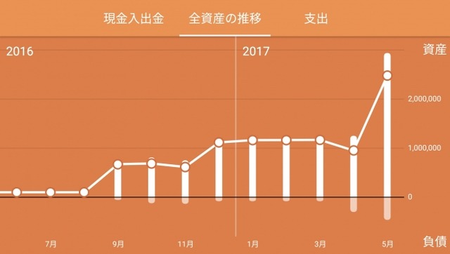 1)バランスカードの画面を横向きにする、または口座残高表の右上にあるメニューボタンから「グラフを表示」を選択することで、推移グラフが表示されるようになりました。バージョン1.1.7(Android 4.4以上対応)