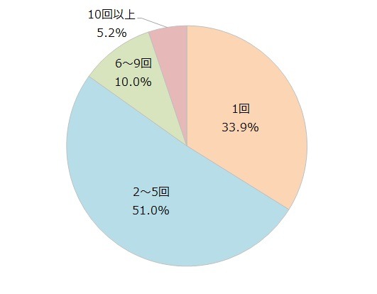 「夜間休日診療を利用したことがありますか?」という質問に「はい」と回答した方は、全体の50.3%でした。利用したことがある方に利用回数をお聞きしたところ、「2回~5回」が最も多く、51%でした。「1回」は33.9%で、夜間休日診療を利用したことがある人は複数回利用しているケースが多いことがわかりました。