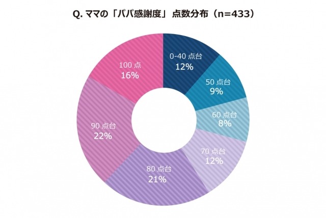 ■ ママの“パパ感謝度”は、平均73.67点(100点満点)。約6割のママが80点以上と回答。