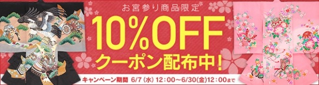 キャンペーン期間中にお宮参り商品をバスケットページからキャンペーン詳細に記載されているクーポンコードを入力して手続きしていただくと、10%OFFでレンタルできます!