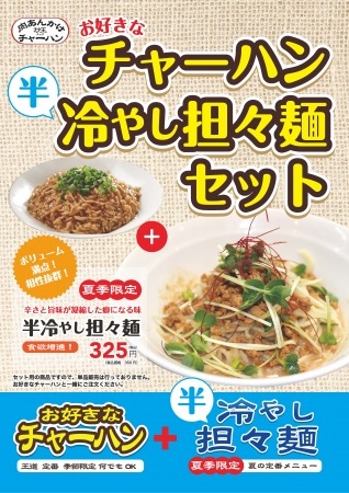 エフアールジェイ株式会社(本社:東京都武蔵野市、代表取締役:寒川登代志)が運営する「肉あんかけチャーハン炒王(チャオ)」は、2017年 6月19日に、「ミニ冷やし担々麺セット」を販売いたします。クリーミーなゴマダレとチャオ特性ラー油の効いた、アジアンテイストな香りが後を引く冷やし坦々麺です。
