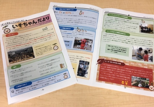 「環境ISO学生委員会の取り組みを多くの方に知っていただくことで、地域の皆様と交流するイベントを増やしていくきっかけにしたいと考えています。地域には子どもから高齢者まで幅広い世代の方々がお住まいなので、この広報紙の対象をどの世代にするのか悩みましたが、回覧板での配布ということもあり、大人の方向けのものとしました。たくさんの方々に読んでいただけると嬉しいです。」(山口逸平・工学部2年生)