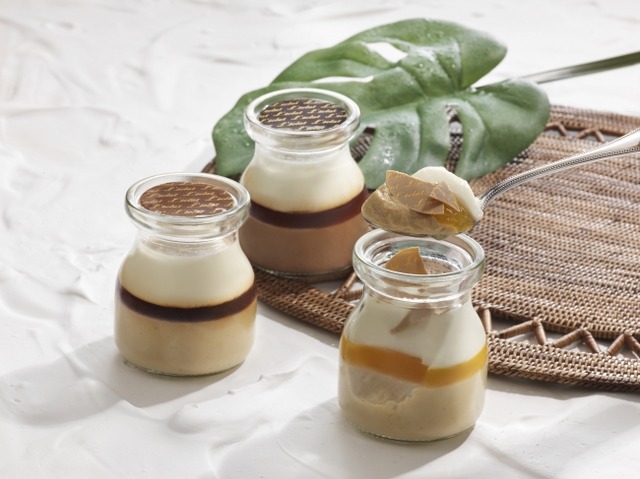 昨年秋に、「口どけ滑らかな味わいでカカオの風味をお楽しみいただきたい」というコンセプトから生まれた、ショコラデザートの「クレーム・オ・ショコラ」。ベースとなるクリームはカカオマスで香りづけし、コクがありなめらかな味わいになるように仕上げています。今回登場する「ココナッツ・パッション」「カフェ」「バニラ」は、昨年発売の「カカオ」「ショコラ」同様にしっかりとしたカカオの風味を感じながらも、さっぱりと軽い口あたりに仕上げた3層の味わいが奏でる夏のショコラデザートです。