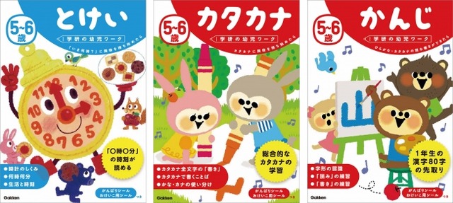 新発売の、学研の幼児ワーク「とけい」「カタカナ」「かんじ」で、楽しく入学準備を始めましょう。小学校でのお勉強が待ち遠しくなること間違いなしです!
