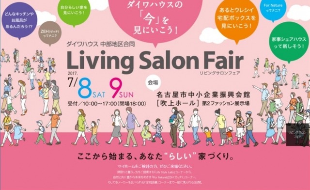 大和ハウス工業株式会社は、平成29年7月8日(土)と9日(日)に ”ダイワハウスの「今」を見に行こう!「中部地区合同リビングサロンフェア」" を愛知県の「名古屋市中小企業振興会館(通称:吹上ホール)」で開催いたします。