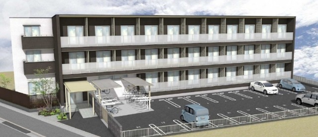 【完成予想図:アイサワ工業株式会社社員寮(オリジナルCLTコア工法)】