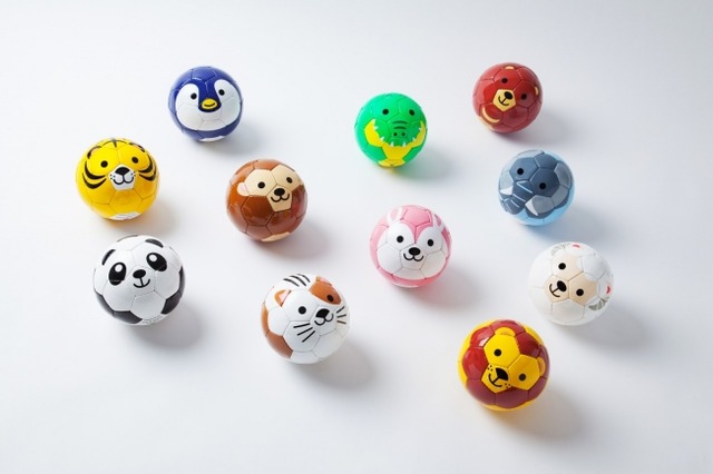 ボールはトラ、犬等の顔がプリントされ1球1球パキスタンの工場の職人によって競技用サッカーボール同様の製法である手縫いで作られています。また、にこっと笑ったキュートな表情はもちろん、おしりにはしっぽやイラストがデザインされた遊び心あふれるデザインボールです。