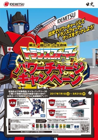 トランスフォーマーは誕生してから30年以上愛され続けている日本発祥の、世界で最も有名な変形ロボットです。この夏、期間限定でトランスフォーマーとのコラボレーションキャンペーンを開催しますので、ぜひ出光SSにお立ち寄りください。
