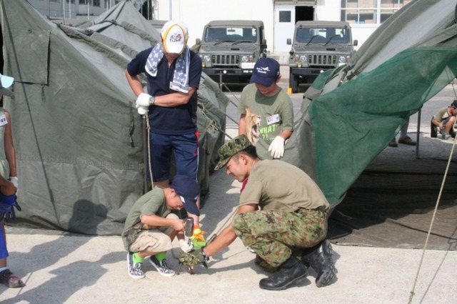 このキャンプは、陸上自衛隊の協力を得て実施している夏休み恒例のイベントで、今回が31回目。自衛隊員の指導のもと、天幕設営(写真は過去のキャンプの様子)や野外炊事、救命救急講習、装備品見学を行うほか、自衛隊車両体験試乗かヘリコプター体験搭乗のいずれかに参加できます(当日抽選で決定)。