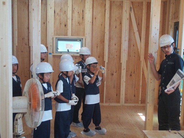 最後に、新聞をつかって一日の発表会を行います。『家をつくるには、いろいろな道具を使っていること』『道具を軽々と扱う大工さんはすごい』『家ができるまでには、多くのひとがかかわっていると感じた』など、家づくり体験を通して様々な発見ができた様子でした。