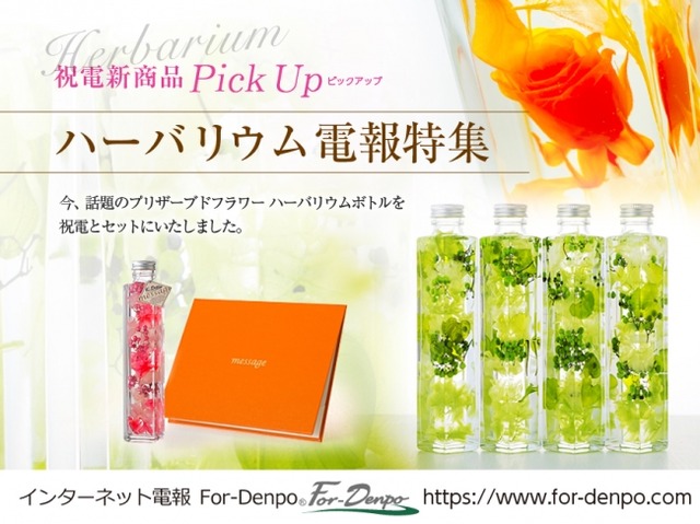 24時間ネットでお申込みのできるインターネット電報サービス『For-Denpo』( https://www.for-denpo.com )を提供する株式会社プライムステージ(所在地:広島県広島市、代表取締役:北谷 宏朗)で、6月21日に電報業界初の「ハーバリウム電報」を発売開始いたしました。