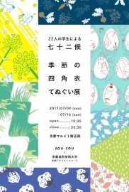 京都マルイ(株式会社丸井、本社:東京都中野区、取締役社長:佐々木 一)では、7月9日(日)~7月16日(日)までの期間、京都造形芸術大学×sou・souのコラボ企画「22人の学生による七十二候 季節の四角衣てぬぐい展」を開催します。