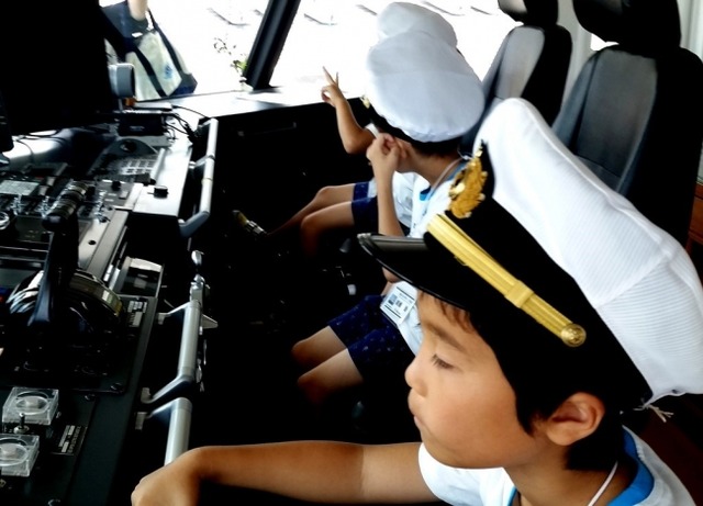 さらに弊社では、高速クルーズ船「イルドバカンスプレミア」を活用したオリジナルのイベントとして「小学生1日船長体験」を実施いたします。こちらは、公募により選ばれた3名の小学生が「1日船長」となって、特製ユニフォームを着て普段は入れないブリッジ(操舵室)にて、船内放送など船長の業務体験、お客様のお出迎えなどを体験する毎年恒例の人気企画です。
