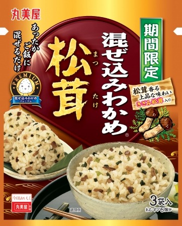 丸美屋食品工業株式会社(本社:東京都杉並区、社長:阿部豊太郎)では、ロングセラーの「混ぜ込みわかめ」シリーズより、「期間限定 プレミアム混ぜ込みわかめ<松茸>」「期間限定 プレミアム混ぜ込みわかめ<栗ごはん風>」「期間限定 プレミアム混ぜ込みわかめ<えび天むす風>」を、2017年8月3日(木)から2018年3月31日(土)までの期間限定で販売いたします。