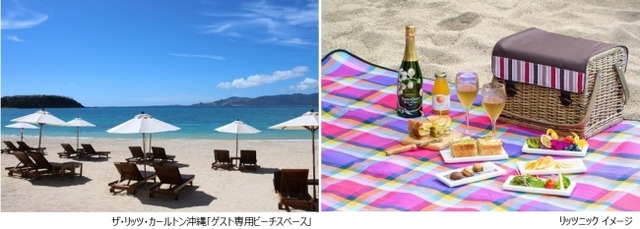 ホテルに程近い喜瀬ビーチには、ザ・リッツ・カールトン沖縄「ゲスト専用ビーチスペース」がオープンし、専用車両による無料送迎を行っております。ビーチスペースにはデッキチェアとパラソルをご用意し、お飲物や軽食もご注文いただけます。また、特製クラブハウスサンドイッチ、グリーンサラダ、チップス、フルーツ盛り合わせ、クッキー、ジュースなどをバスケットに詰め込んだザ・リッツ・カールトン沖縄オリジナルのピクニックボックス「リッツニック(ritz-NIC)」をご提供しています。シャンパンとセットでもご注文いただけますのでビーチにお持ちになり、ご家族やご友人と優雅なランチタイムをお過ごしになってはいかがでしょうか。