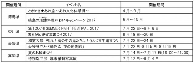 この夏、四国各地で魅力的なイベントが多数開催されますので、「四国まるごとドライブパス!2017」をご利用いただき、是非、四国へお越しください。