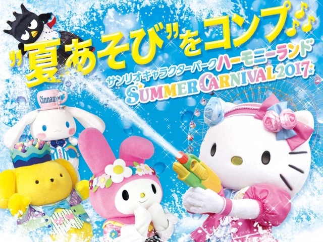 ハーモニーランド(大分県日出町)では、夏休みイベント「サマーカーニバル2017」を7月15日より開催します。親子であそべるプールや水かけイベント、ゆかた姿のキャラクターたちと一緒に盆踊りを楽しむショー、そして夜間営業日の花火など、昼も夜も“はじける夏あそび”がいっぱいです。今年の夏は、大人も子どもも、ハーモニーランドの夏あそびをコンプリートしよう!