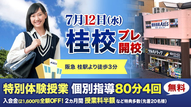 この機会に、「個別指導Axis桂校」をご利用ください。見学や学習相談は、いつでも承っております。