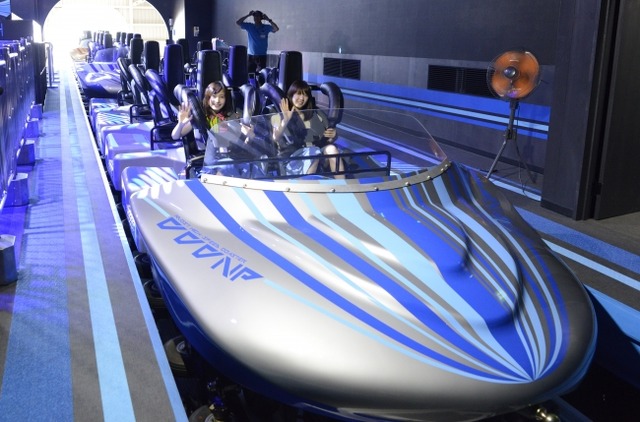タンクの中にギューっと圧縮した空気で、ライドを一気に押し出してスタートする「エアーランチ方式」で、発射!頭がライドに張り付いて横を向けないほどの圧倒的な加速力をさらに追及します。