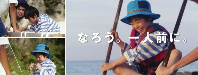 動画では、夏休みに海に遊びに来たのにゲームばかりしている男の子がボーイスカウトとの触れ合いから、「イカダ作り」に挑戦することで、活発かつ一人前に成長していく様子を表現。ボーイスカウト活動の体験をとおして、自分のことは自分ででき、何事にも挑戦し、誰かの助けになれる、そんなボーイスカウト流の”一人前”に成長していく姿を表しています。