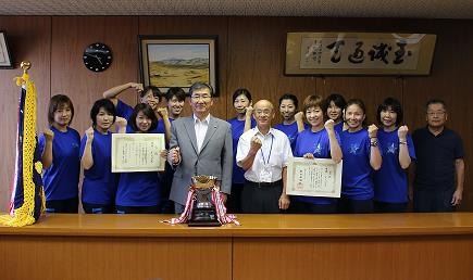 平成29年8月2日(水)~5日(土)に岩手県で開催される「第48回全国ママさんバレーボール大会」に出場する市内ママさんバレーボールチーム「インパルス」の選手11名が、四街道市長を表敬訪問しました。