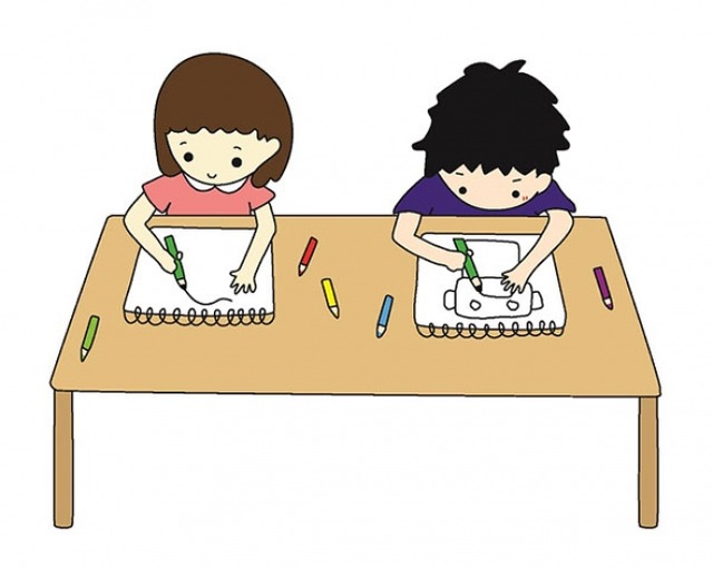 体験後には、作ってみたいロボットを想像し、クレヨンや鉛筆で画用紙に描きます。