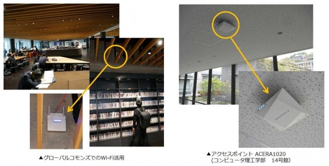 このように、学生が自由に学ぶ環境では、快適な無線LAN環境が求められており、学生たちはラーニングマネジメントシステムの活用や授業での演習を通じて、学習の理解が向上すると考えています。アクセスポイントは、タブレット、スマートフォンの急速な普及とともに、あらゆる現場での必要性が高まっており、今後とも社会生活の様々な場面でお役立ていただけるよう努力してまいります。