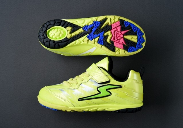 各パーツ素材の強度をアップしつつも軽量設計のシューズです。サッカーのシーンも意識したシューズのスタイルに、速さをイメージさせる「稲妻」をアッパーのデザインに落とし込んでいます。ムーンスター スーパースターは、速く走りたいと願う子ども達を応援していきます。