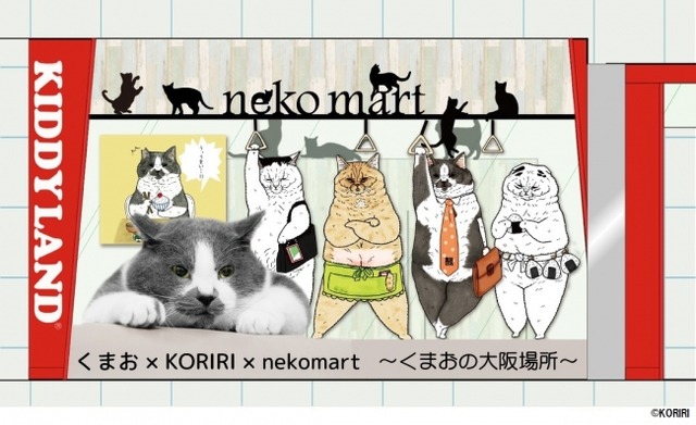 その他、インスタグラムで大人気となり、フォロワーからは“親方”の愛称で呼ばれる猫「くまお」がneko martに初登場、くまおが山からおりてきた展:「くまおの大阪場所」を開催します。スペシャル企画として、neko mart店頭ショーウィンドウにて「KORIRI」×「くまお」×「neko mart」コラボ写真展を実施します。また、KORIRIさんが描いた「くまお」のパネルも展示やコラボグッズの販売も行います。8月5日(土)、6日(日)、26日(土)、27日(日)にはneko martに飼い主の“くまお母”こと鎌田里苗さんも在店します。