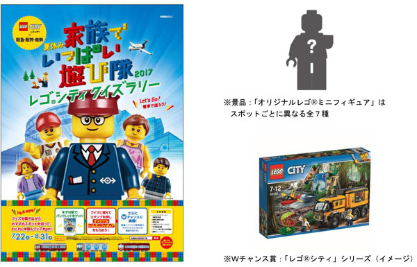 また、「オリジナルレゴ(R)ミニフィギュア」と一緒にお渡しする「Wチャンス応募シール」を、阪急三番街「レゴ(R)ストア梅田店」にお持ちいただき(1施設1口(最大7口)として)ご応募いただくと、「レゴ(R)シティ」シリーズや各社が秋に開催するイベントへのご招待、鉄道ノベルティセットなど、素敵な景品が抽選で当たります。