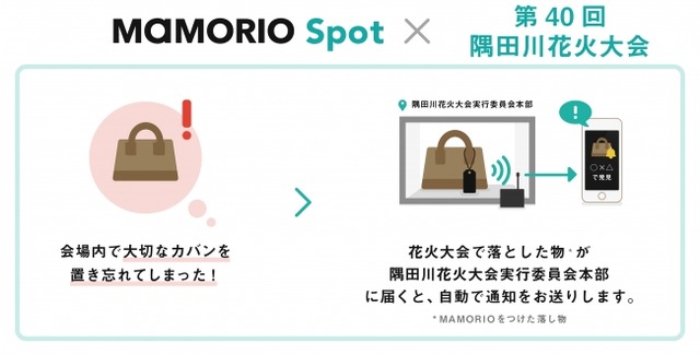 MAMORIO株式会社(代表取締役:増木大己 以下:MAMORIO社)は、 台東区役所と連携し、第40回隅田川花火大会(開催日:2017年7月29日)のご来場者様のサービス向上を目的として、MAMORIO Spotを活用した「お忘れ物自動通知サービス」を提供致します。
