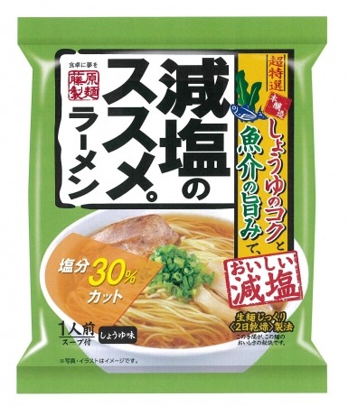 株式会社 永谷園ホールディングス(社長:永谷 泰次郎、東京都港区)のグループ会社 藤原製麺株式会社(社長:柴田 滋、北海道旭川市)は、塩分30%カット(※2)の即席袋ラーメン「減塩のススメ。ラーメン しょうゆ味1人前」(税抜147円)を2017年8月23日(水)より全国で発売いたします。