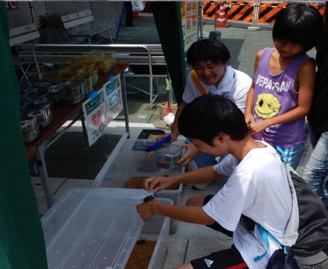 夏の行楽シーズンを迎え、お盆の交通混雑期前の交通事故防止対策の一環として、交通事故写真の展示や交通安全チラシ・渋滞予測ガイド等をお配りして、サービスエリアに立ち寄られたお客さまに安全運転を呼びかけるものです。お子様には、カブトムシ・クワガタムシの無料プレゼントもあります。