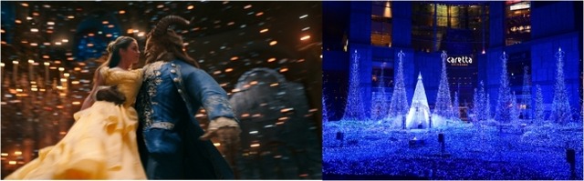 劇中の4つの名シーンからあなたが大好きなシーンを選んでツイッターに投稿すると、抽選で映画『美女と野獣』関連グッズなどをプレゼント。さらに、投稿で人気だったシーンをイメージしたイルミネーションショーを、カレッタ汐留の冬季イベント 「Caretta Illumination」にて上演します。