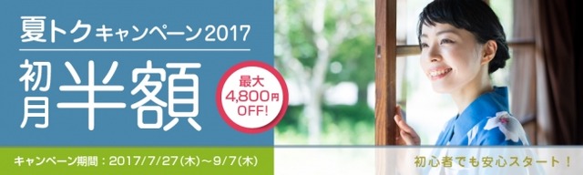 期間内に新規入会された方は、初月月額料金(3,800円~9,600円)(税別)が半額となります。
