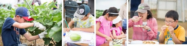 今回は、その中でも「なす3種の比較研究や味比べができるキット」を用いて、「ナスの自由研究が1日で終わるイベント」を開催、6組の小学生親子にご参加頂きました。生産者の長谷部さんに教えていただきながらの「トロなす」の収穫体験、商品付属の「研究シート」を用いたナスに関するワークショップ、3種のなすを食べ比べできるピザの調理を実施いたしました。