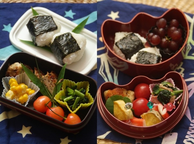 この度開講する「親子和食卓育プレキッズお弁当講座」は、子どもが“できる範囲”で調理をし、漆弁当箱や手ぬぐいで作ったランチョンマットを選んで料理を盛り付けます。メニューは季節によって変わりますが、いずれもメイン(肉か魚)・野菜の副菜2品・ご飯もの・デザートかフルーツの構成で、各料理に使う食材は1~2種類。「まごわやさしい=豆、ごま、わかめ(海藻)、野菜、魚、しいたけ(きのこ)、いも」をベースにした、シンプルで作りやすく栄養満点な和食弁当です。