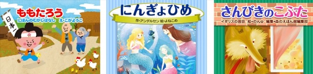 機内モニターでは、森のえほん館で掲載の絵本コンテンツ「日本の昔話」および「世界の童話」カテゴリの100作品以上の中から、特に人気のある「ももたろう(Peach Boy)」「にんぎょひめ(The Little mermaid)」「さんびのこぶた(The Three Little Pigs)」の3作品の日本語版と英語版の絵本を、動画として視聴することができます。併せて、機内誌およびANA公式ウェブサイト「ANA SKY WEB」へも掲載されます。