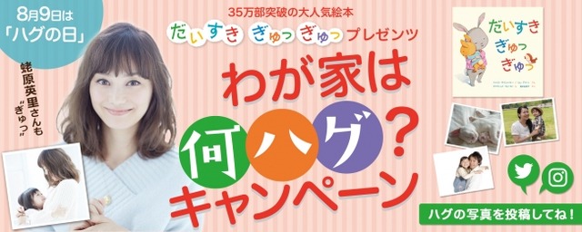 ハッシュタグ「#○○ハグ」「#わが家は何ハグ」をつけて、Instagram またはTwitter に投稿。(例:#おはようハグ、#おかえりハグ、#仲直りハグ など)