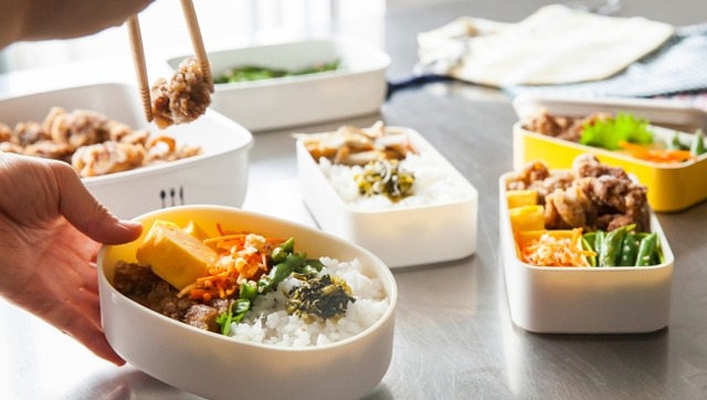 落ち着いた色味で、おかずの色彩がより鮮やかに。中子を取り外せばおにぎりのような高さのあるメニューやオムライスなどのご飯がメインのおかずも入れることができます。