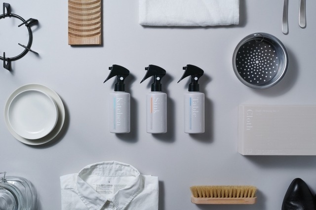 7月7日にブランドをローンチした、シリーズファーストアイテムは、「食卓(Table)」、「台所(Kitchen)」、「排水口(Sink)」のスプレーボトルタイプの洗浄剤と、使い切りで清潔さを保てる「不織布の1日ふきん(Cloth)」をラインナップしています。