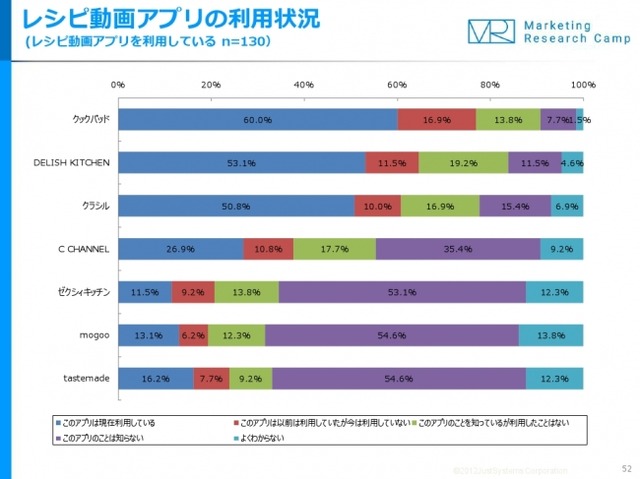 ■レシピ動画アプリ利用率1位は「クックパッド」、新興アプリが僅差で猛追