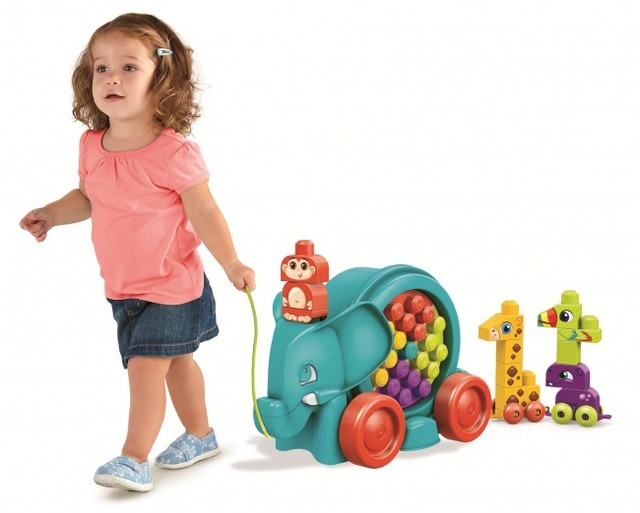 このたび発売する「1才からのメガブロック エレファントパレード」は、動物のステッカーを貼ったブロックを積み上げて遊んだり、ゾウさんについたひもをひっぱることでゾウさんや愉快な仲間たちとあんよでパレードができる商品です。また、「1才からのメガブロックシリーズ」の他商品(別売)のブロックと一緒に組み合わせて遊べるため、お子様の想像力や創造力を刺激します。