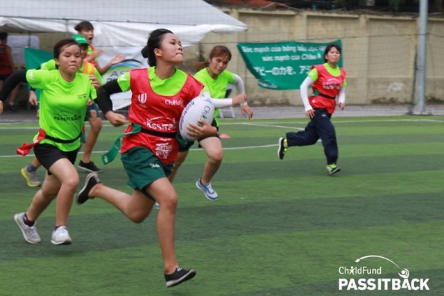 「チャイルド・ファンド パス・イット・バック」は、タグラグビーとライフスキルを組み合わせたプロジェクトです。アジアの子どもたちや若者が、困難を乗り越え、前向きな社会的変化を起こす力を、タグラグビーを通して身につけ、それを自分たちが属するコミュニティの次の世代に「パス」していくことを目指します。ジェンダー平等に重きをおいており、現在プロジェクトに参加している選手とコーチの半数は女の子です。