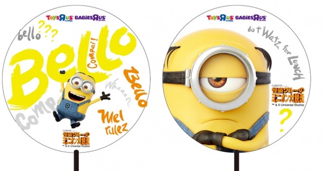 今回の日本マクドナルドとのコラボレーションに加え、日本トイザらスでは現在大ヒット中の映画「怪盗グルーのミニオン大脱走」の公開を記念して、トイザらス・ベビーザらス ポイントカード会員様※2の限定特典として、「イエローサンデー」キャンペーンを実施しています。8月6日(日)と8月13日(日)に、黄色いものを身に着けて全国のトイザらス、ベビーザらス店舗にご来店されたお子様※3に、「ミニオンサンバイザー」又は「ミニオンゴーグル」<全3種/紙製>をプレゼントいたします。(各日各店先着60名様対象。プレゼントはお一人様1日1個限り)