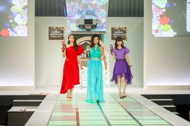 ウォーキングを披露した、香椎さんは「(どんなランウェイになるのか)まったく想像がつかなかったですが、香りの中でのウォーキングは、とっても心地よかったです」とコメント。小島さんは「香りで空間演出が変わるって、本当に不思議な体験でした。ドキドキしましたが、とても楽しかったです!」と、その香りと光が連動する演出を楽しんでいた様子。優希さんは、「すっごく緊張していたのですが、香りの演出で緊張が和らぎました!今もほんのり香りが残っていて、落ち着きます」と、アロマジュエルの香りが気持ちのコントロールに繋がったことを言及していました。その後、アロマジュエルの香りに対する感想を聞かれた、小島さんは「優しい、自然な香りだなと思いました。上品で爽やかさを感じる香りなので、毎日この香りをまとっていたいです。」とコメント。現役高校生である優希さんは「女の子っていい香りをさせたいじゃないですか。アロマジュエルは、清潔感があって、上品な香りなので、私はハンカチやブラウスにけています。あとは、体操着やタオルにつけておくと汗のニオイも気になりません。」とアロマジュエルの魅力をコメント。また、香りにはこだわりがあるという香椎さんは、好きな香りを聞かれると、「(服や、空気に)なじむような香りが好きです。ふんわりと嫌味がない香りが好きです。その日その日で香りを使い分けています。香りは自分を落ち着かせてくれる必須アイテムです。」と自身の好みの香りを語りました。
