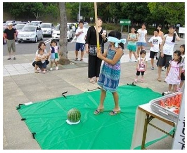 内容(1.2.共通):小学生以下のお子様を対象で、割っていただいたスイカをその場で無料提供