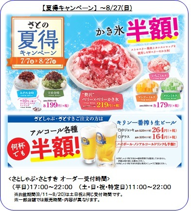 ぜひ和食さとの夏限定キャンペーンで、この「熱い夏」を快適にお過ごし下さい。